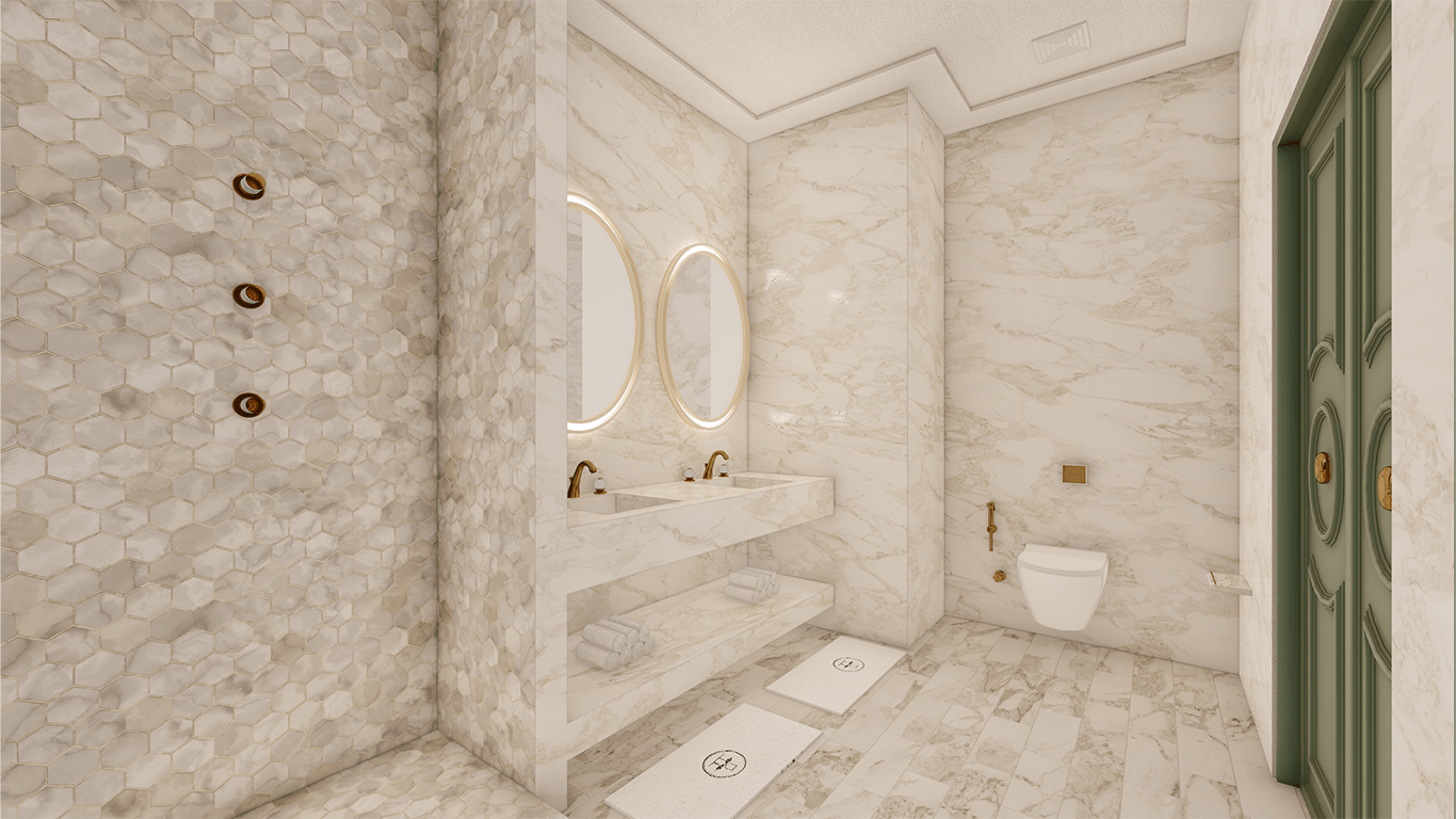 Rich textures, such as silk drapes, velvet upholstery, and high-thread-count linens, were used to enhance the tactile experience. The color palette, consisting of soft neutrals with accents of deep jewel tones, provided a serene backdrop while adding depth and character to each room. Thoughtfully placed lighting fixtures, from grand chandeliers to subtle ambient lights, highlighted the exquisite details and created a warm, inviting ambiance. Every element, from the intricate moldings to the polished marble surfaces, was chosen to reflect the highest standards of luxury, ensuring that guests are enveloped in an environment of unparalleled refinement and comfort.