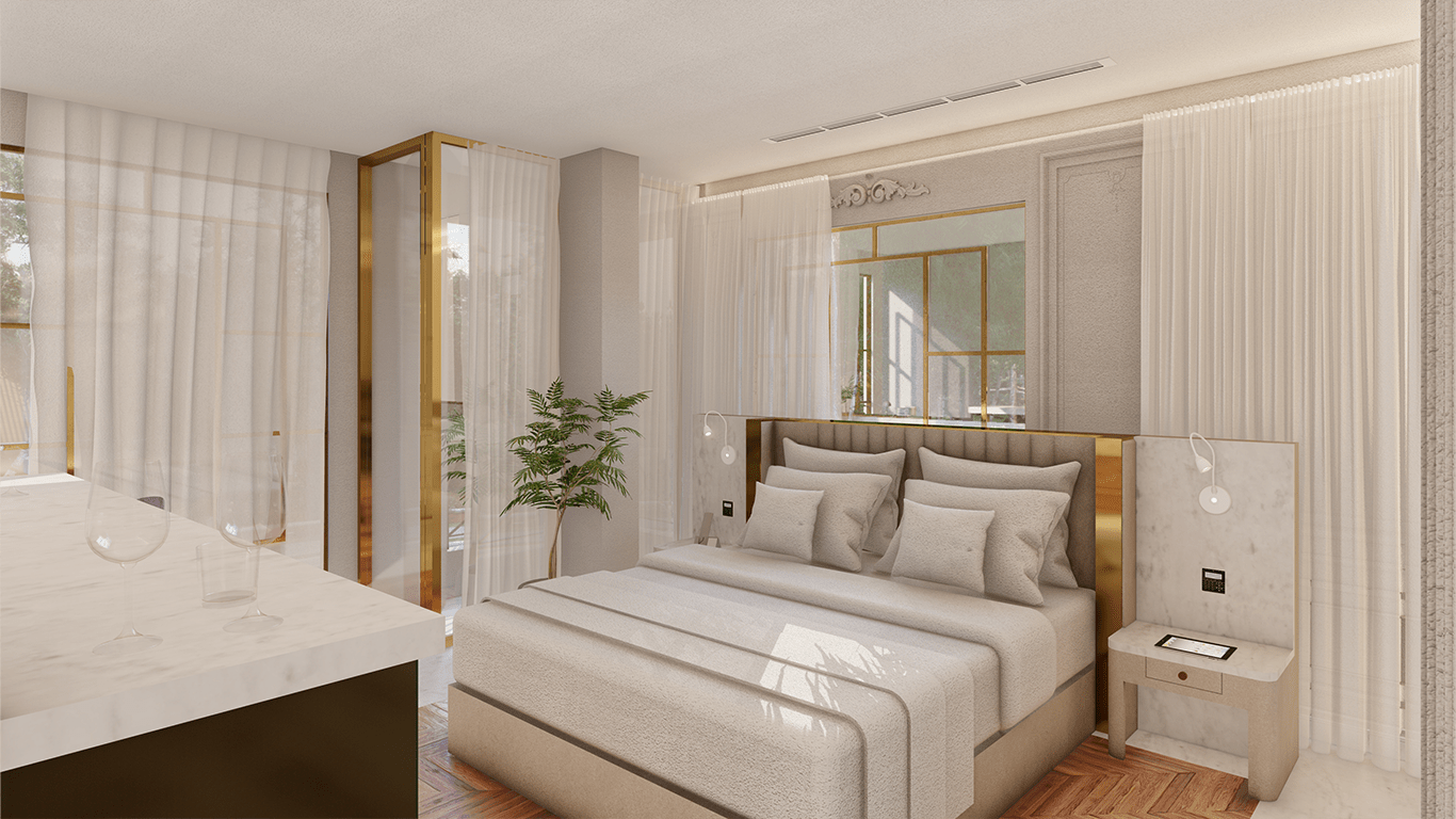 The interior design of this hospitality project was executed with impeccable attention to detail, achieving a perfect balance between contemporary elegance and timeless sophistication. The design ethos centered on creating a sumptuous yet welcoming atmosphere, with spaces that exude luxury while remaining intimate and comfortable. Custom-designed furniture, crafted from the finest materials, complemented the bespoke art pieces adorning the walls.